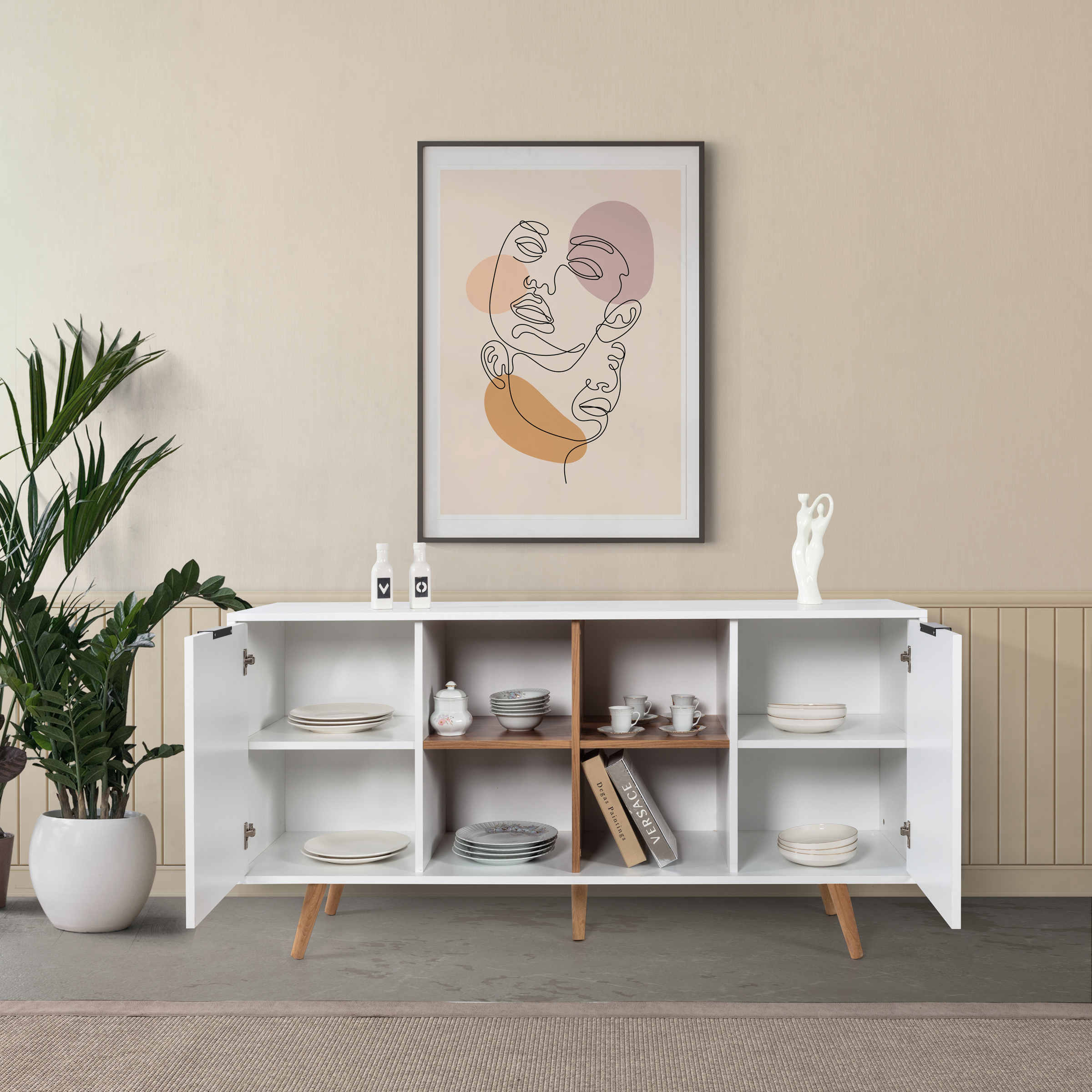 4618 Sina 160 Cm ( AHŞAP AYAKLI , METAL KULPLU ) Konsol , Beyaz - Söğüt