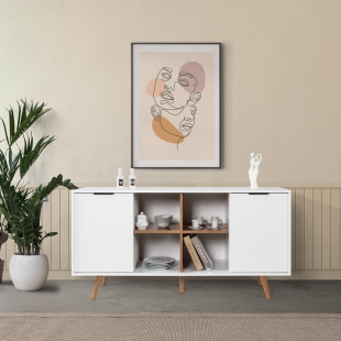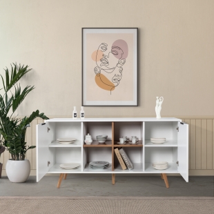 Evinizin dekorasyonuna modern bir dokunuş katmak istiyorsanız, ahşap ayaklı metal kulplu konsol tam size göre! Şık tasarımı, geniş depolama alanı ve dayanıklı yapısıyla hem estetik hem de işlevsel bir kullanım sunar. Salon, oturma odası veya antre gibi yaşam alanlarında mükemmel bir tamamlayıcı olarak öne çıkar.