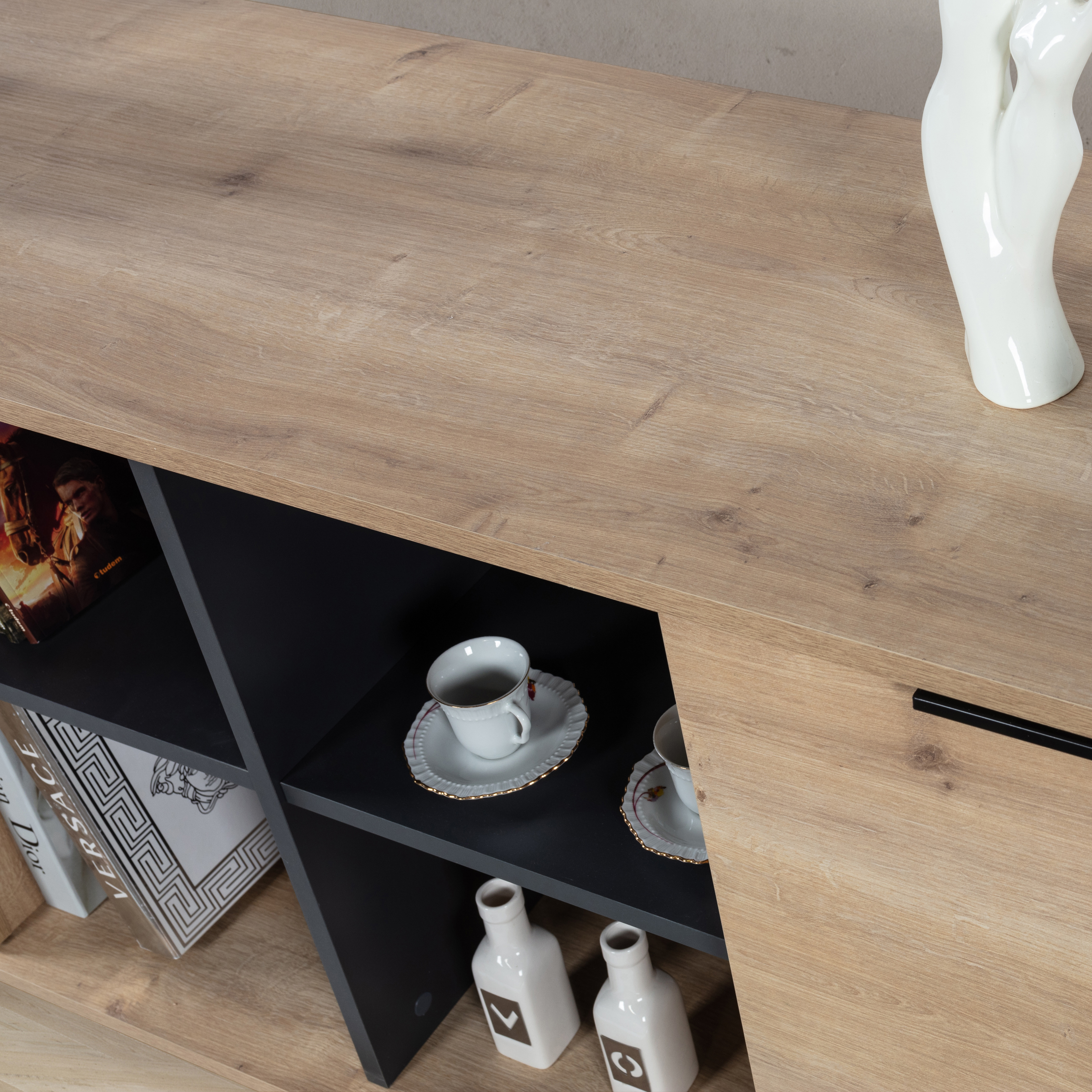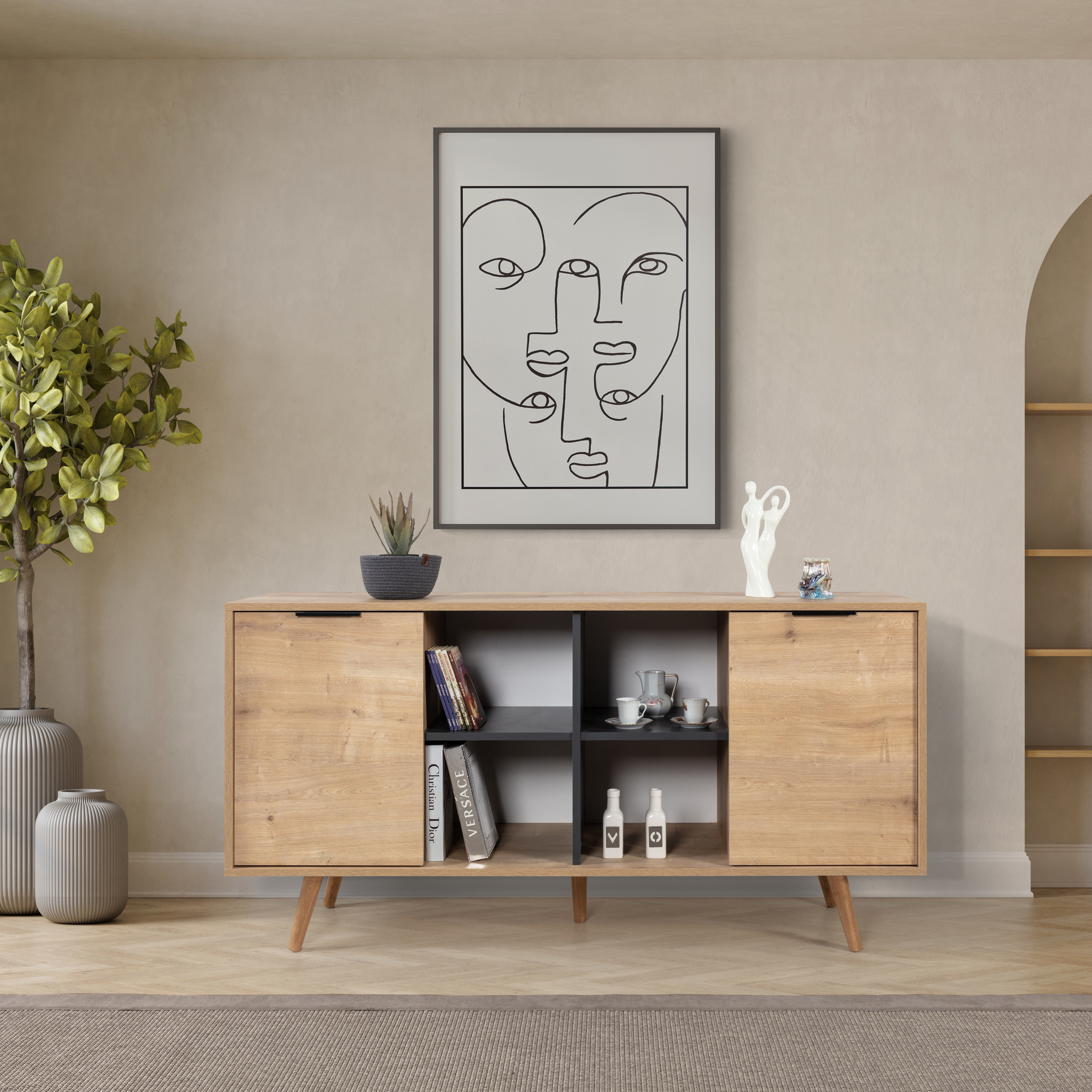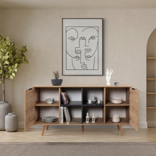 Evinizin dekorasyonuna modern bir dokunuş katmak istiyorsanız, ahşap ayaklı metal kulplu konsol tam size göre! Şık tasarımı, geniş depolama alanı ve dayanıklı yapısıyla hem estetik hem de işlevsel bir kullanım sunar. Salon, oturma odası veya antre gibi yaşam alanlarında mükemmel bir tamamlayıcı olarak öne çıkar.