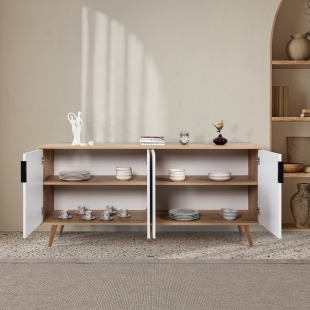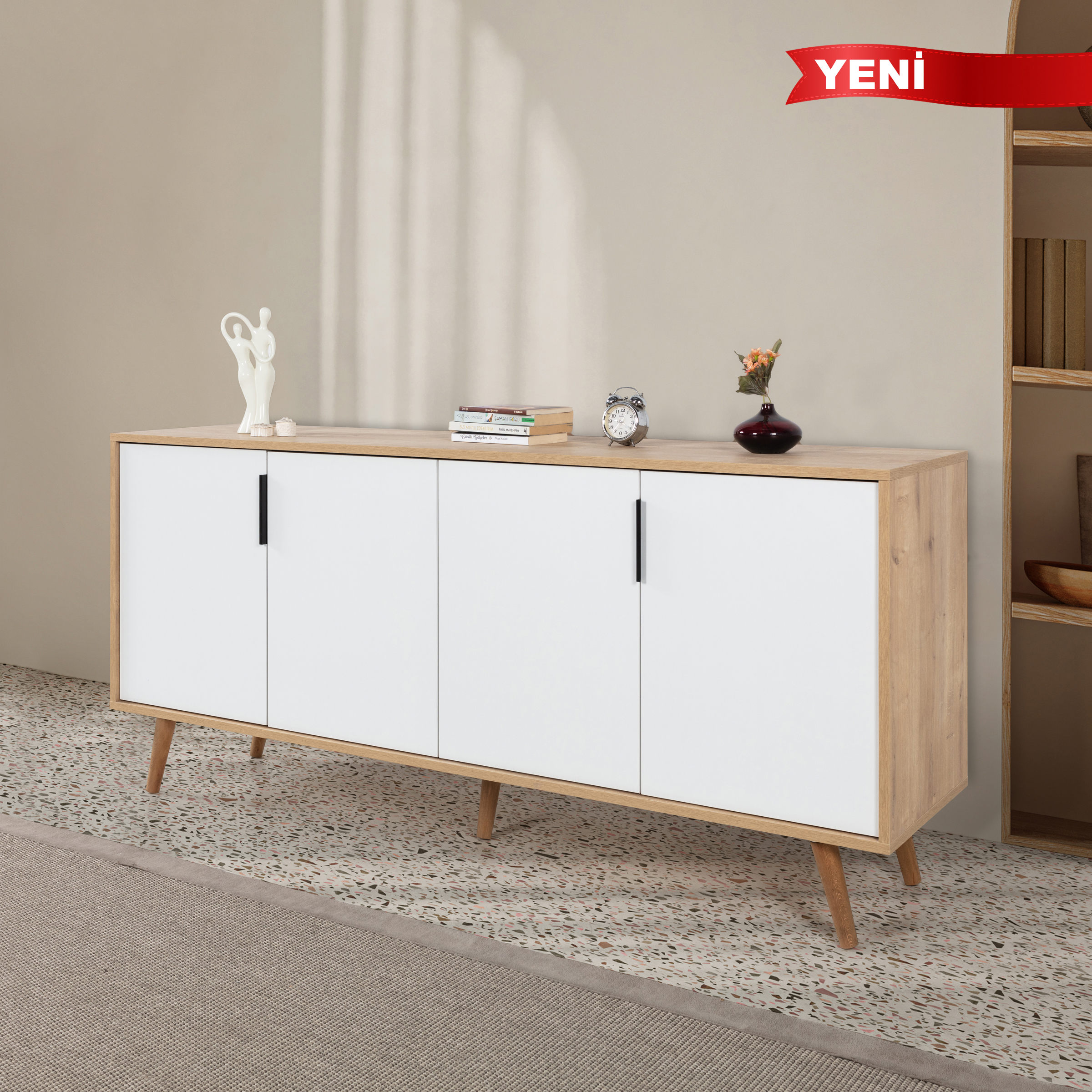 Evinizin dekorasyonuna modern bir dokunuş katmak istiyorsanız, ahşap ayaklı metal kulplu konsol tam size göre! Şık tasarımı, geniş depolama alanı ve dayanıklı yapısıyla hem estetik hem de işlevsel bir kullanım sunar. Salon, oturma odası veya antre gibi yaşam alanlarında mükemmel bir tamamlayıcı olarak öne çıkar.