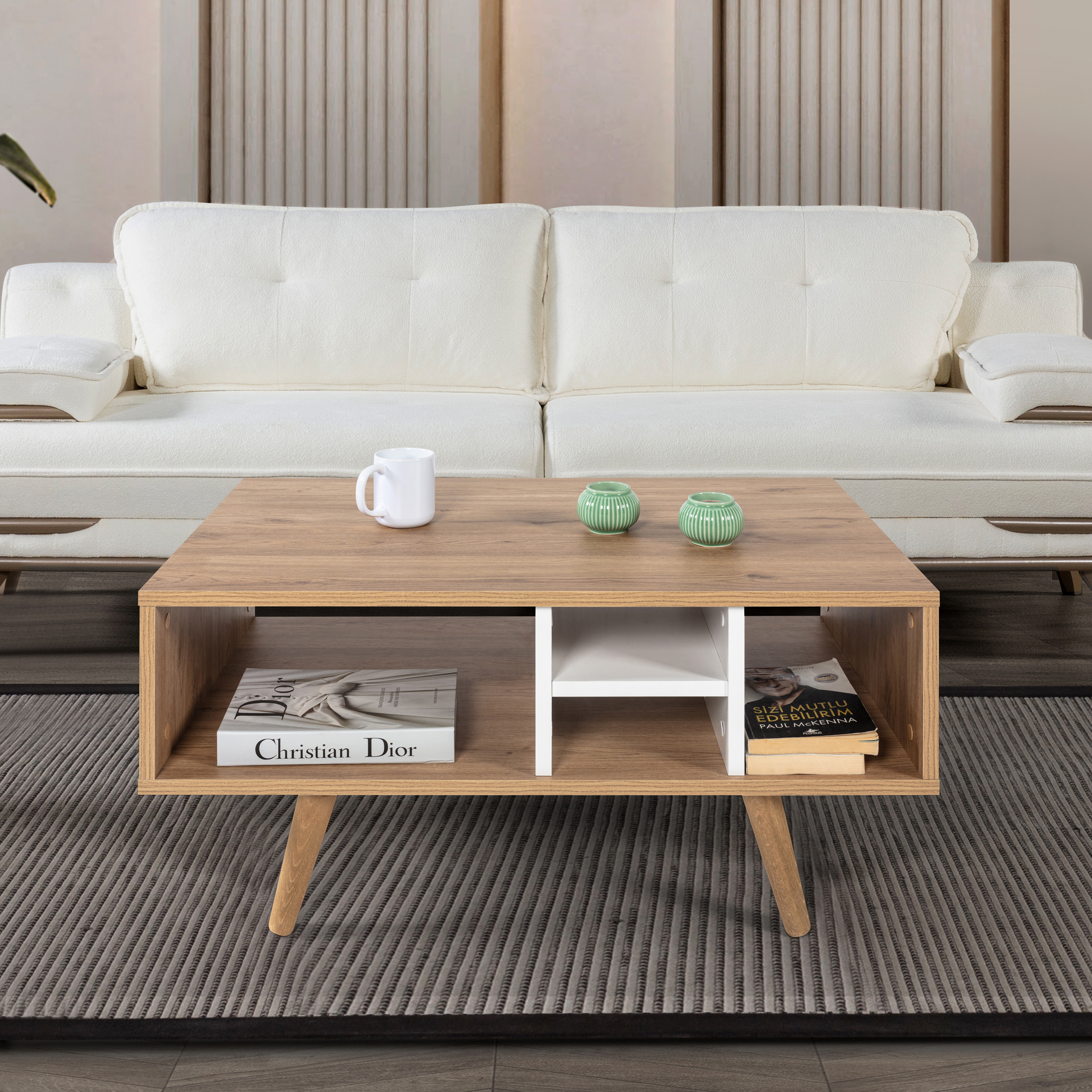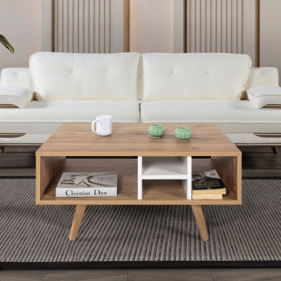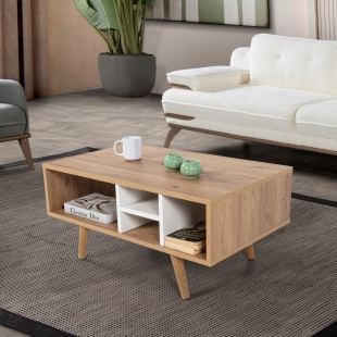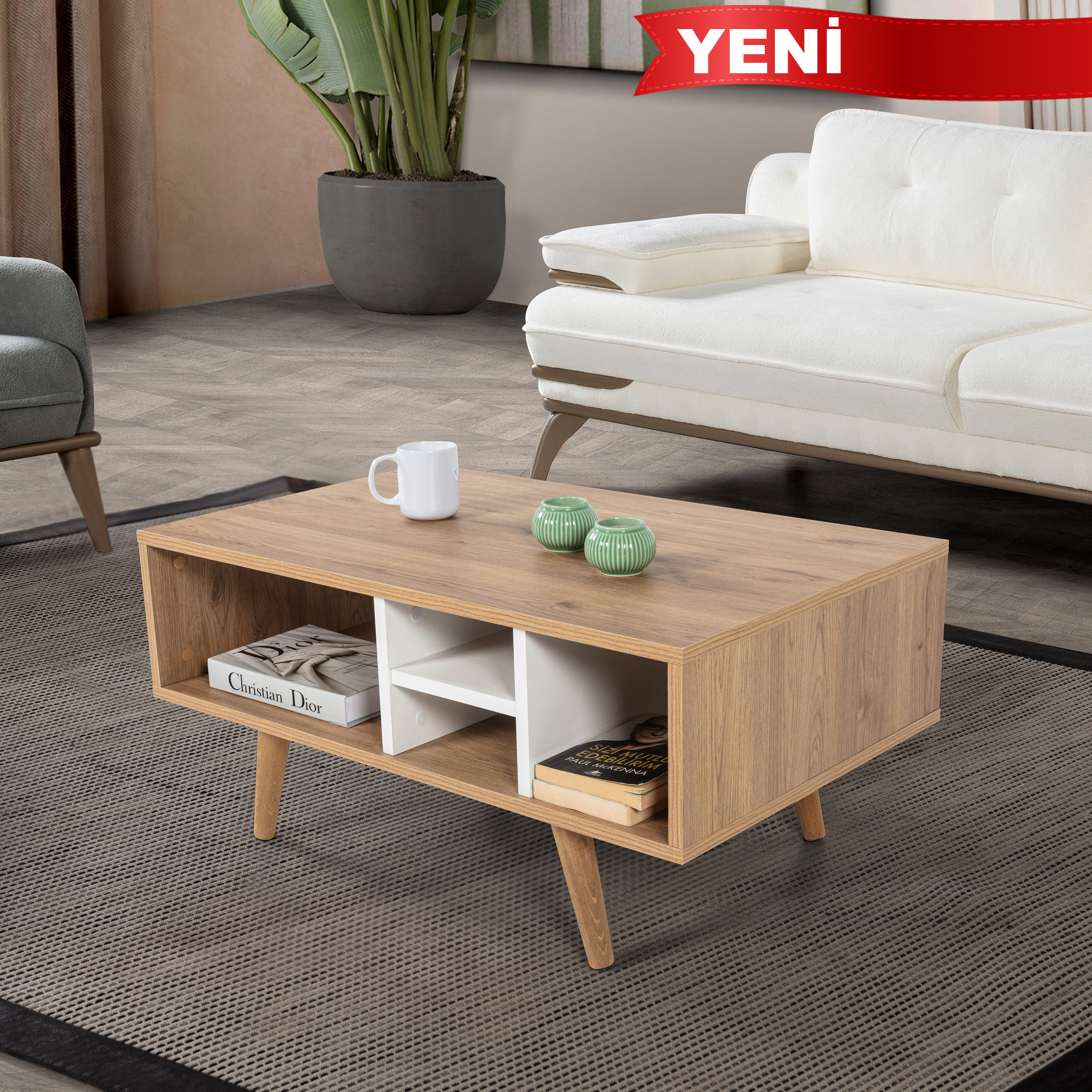 Evinizin en göz alıcı tamamlayıcısı olmaya aday bu modern orta sehpa, fonksiyonelliği ve estetiği bir araya getiriyor.; Ahşap ayakları sayesinde doğal ve sıcak bir görünüm sunarken, bölmeleri ve geniş raf alanı ile günlük kullanımda maksimum depolama ve düzen kolaylığı sağlar.;