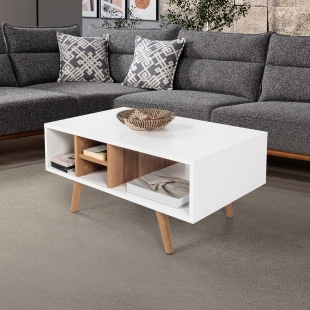 2024 Sina Orta Sehpa ( AHŞAP AYAKLI ) , Beyaz - Söğüt , Salon , Orta Odası ,Ofis