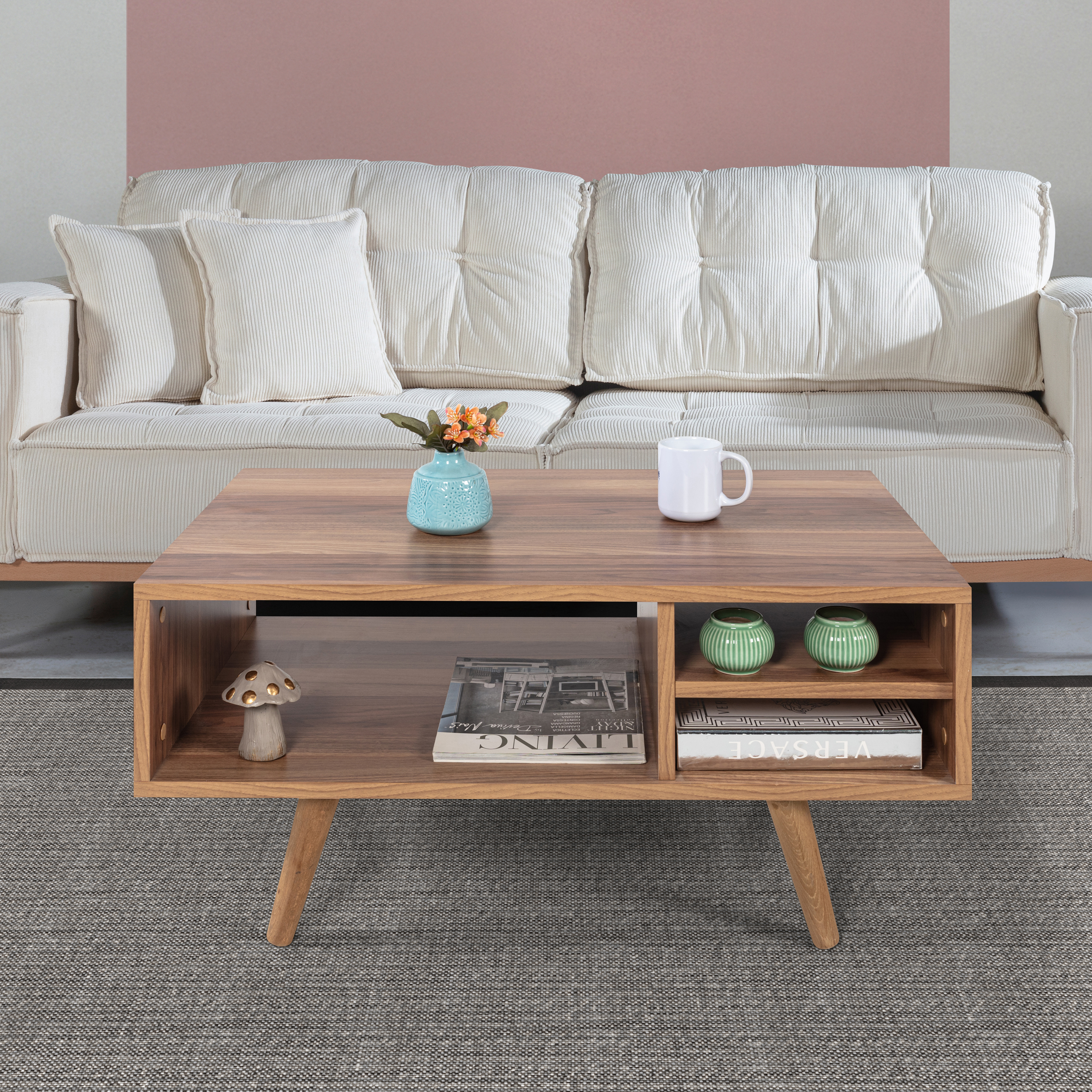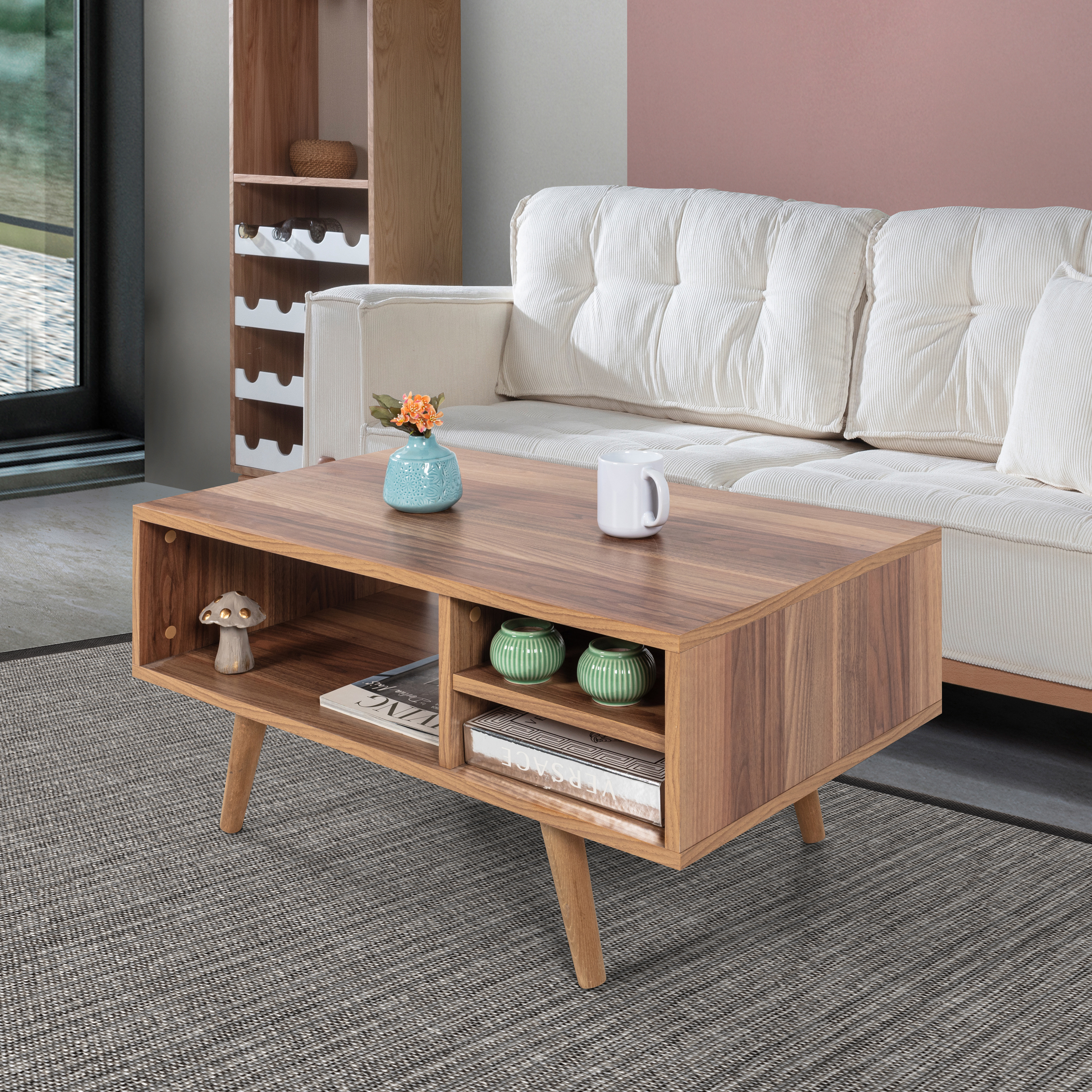 Modern Tasarımlı Ahşap Ayaklı Orta Sehpa – Şık ve Dayanıklı Evinizin en göz alıcı tamamlayıcısı olmaya aday bu modern orta sehpa, fonksiyonelliği ve estetiği bir araya getiriyor.; Ahşap ayakları sayesinde doğal ve sıcak bir görünüm sunarken, bölmeleri ve geniş raf alanı ile günlük kullanımda maksimum depolama ve düzen kolaylığı sağlar.; Ölçüler: Genişlik: 90 cm Derinlik: 55 cm Yükseklik: 43 cm Öne Çıkan Özellikler: Ahşap Ayaklı Tasarım: Doğal dokulu sağlam ahşap ayakları modern görünümü güçlendirir ve dayanıklılık sağlar.; Modern ve Şık Tasarım: Minimal çizgileriyle her dekorasyon stiline uyum sağlar.; Dayanıklı Yapı: Kaliteli malzemesi ve sağlam ahşap ayakları sayesinde uzun yıllar güvenle kullanılabilir.; Fonksiyonel Kullanım: Pratik bölmeleri ve geniş raf alanı; kitap, dergi, kumanda, dekor ürünleri gibi eşyalarınızı düzenli bir şekilde konumlandırmanızı sağlar.; Çok Yönlü Kullanım: Salon, oturma odası veya ofis ortamlarında estetik ve işlevsel bir tamamlayıcı mobilya olarak ideal.; Modern yaşam alanlarına hem stil hem de düzen katacak bu orta sehpa, kullanım kolaylığı ve dekoratif görünümüyle vazgeçilmez parçanız olacak.; Uluslararası Standartlarda Paketleme: Hasarsız ve sorunsuz bir teslimat süreci için ürünlerimiz en doğru yöntemlerle paketlenerek sizlere teslim edilmektedir.; Fabrikamızda demonte olarak hazırlanan ürünlerimizin paketlenmesinde, ürünleri korumak için yan yüzeylerde 18 mm kalınlıkta kesilen, Petek Panel adı verilen karton malzeme kullanılmaktadır.; Ürün köşelerinin deforme olmasını engellemek amacıyla, 2 cm kalınlığında köpük ve 4mm kalınlığında mukavva köşe koruyucu kullanılarak paketleme yapılmaktadır.; Dış koli ambalajında ise 5 katmanlı oluklu mukavva kullanılmaktadır.; Böylece en hassas ürünler bile güvenli şekilde taşınabilmektedir.; Tüm kartonlar %100 geri dönüşüm özelliğine sahiptir.; Kurulum Bilgisi: Ürünlerimiz demonte olarak gönderilmektedir ve kurulum müşteriye aittir.; Paketin içerisinden çıkan kurulum şablonu ile ürününüzü keyifle kullanıma hazırlayabilirsiniz.; Daha kolay bir kurulum için tüm parçalar üzerinde bulunan numaralar sayesinde, bağlantı aksesuarlarının yerini kolayca bulabilirsiniz.; Ürünün kurulumu için tornavida ve çekiç yeterlidir.; Bağlantı sistemi olarak minifiks, kavela tercih edilmektedir.; Böylece ürün zarar görmeden, defalarca kolaylıkla sökülüp kurulabilir.; 1. Sınıf Hammadde İle Üretim: Ürünlerimiz Suntalam olarak bilinen, sağlığa zararsız, kanserojen madde içermeyen Avrupa E1 kalite standartlarında yonga levhalardan üretilmiştir.; Üretimde kullanılan tüm malzemeler çevre ve çocuk sağlığı standartlarına uygundur.; Ürünlerimiz kendi fabrikamızda, yüksek teknolojili makine parkurlarında tüm aşamaları özenle kontrolden geçerek sizlere ulaşmaktadır.; Üretimin tüm aşamalarının dijital ortamda gerçekleşmesi sayesinde hata minimum düzeydedir.; Garanti: Tüm ürünlerimiz üretim ve işçilik hatalarına karşı, ürünün tüm parçaları dahil olmak üzere fatura tarihinden itibaren 2 yıl garantilidir.;