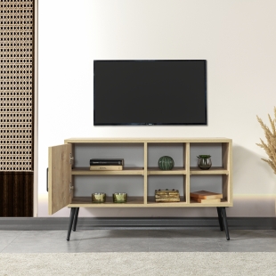 Geniş saklama alanı sayesinde hem medya cihazlarınızı hem de dekoratif objelerinizi düzenli bir şekilde yerleştirebilirsiniz. Kaliteli malzeme ve işçilikle üretilen bu TV ünitesi, salonunuza çağdaş bir tarz kazandırmak için ideal.