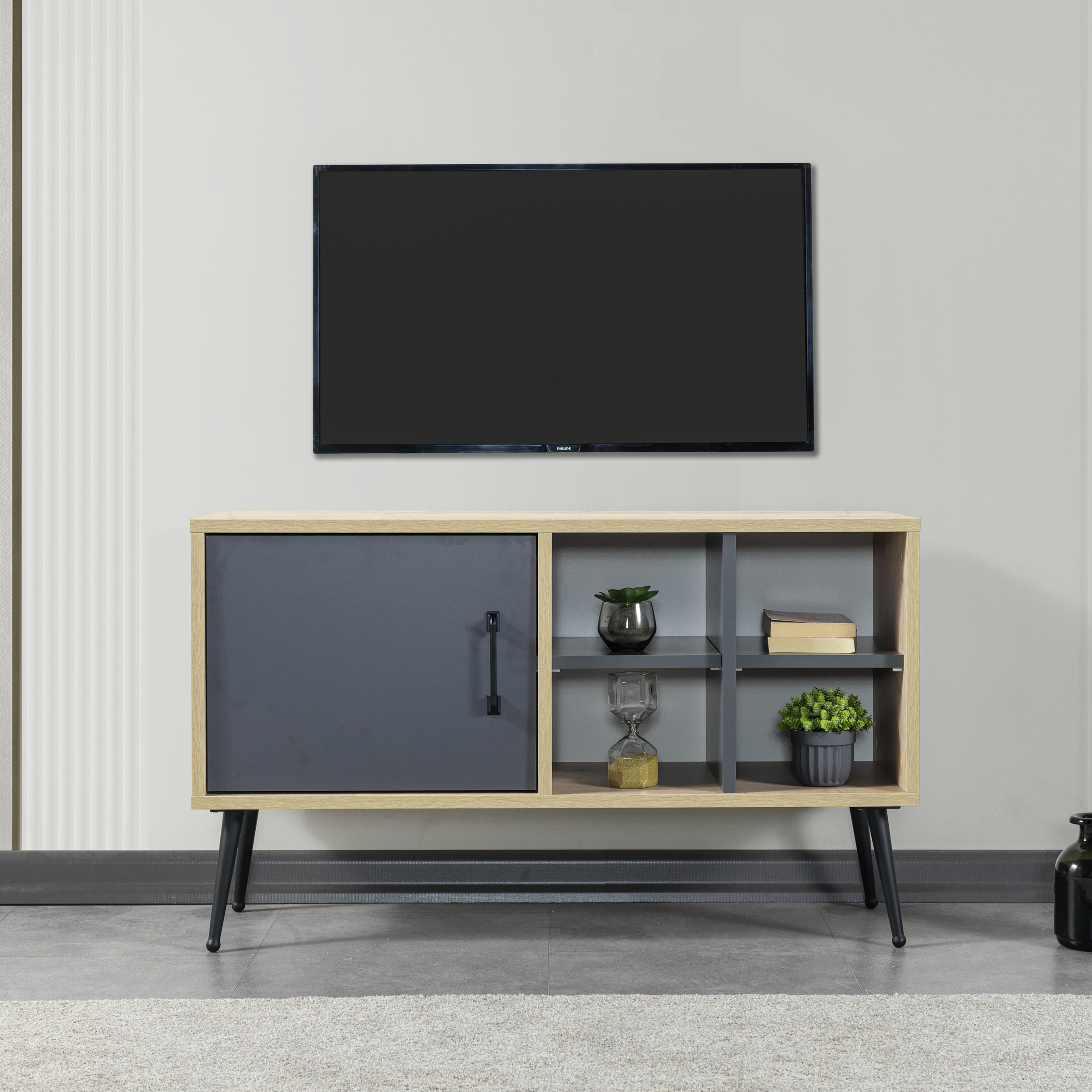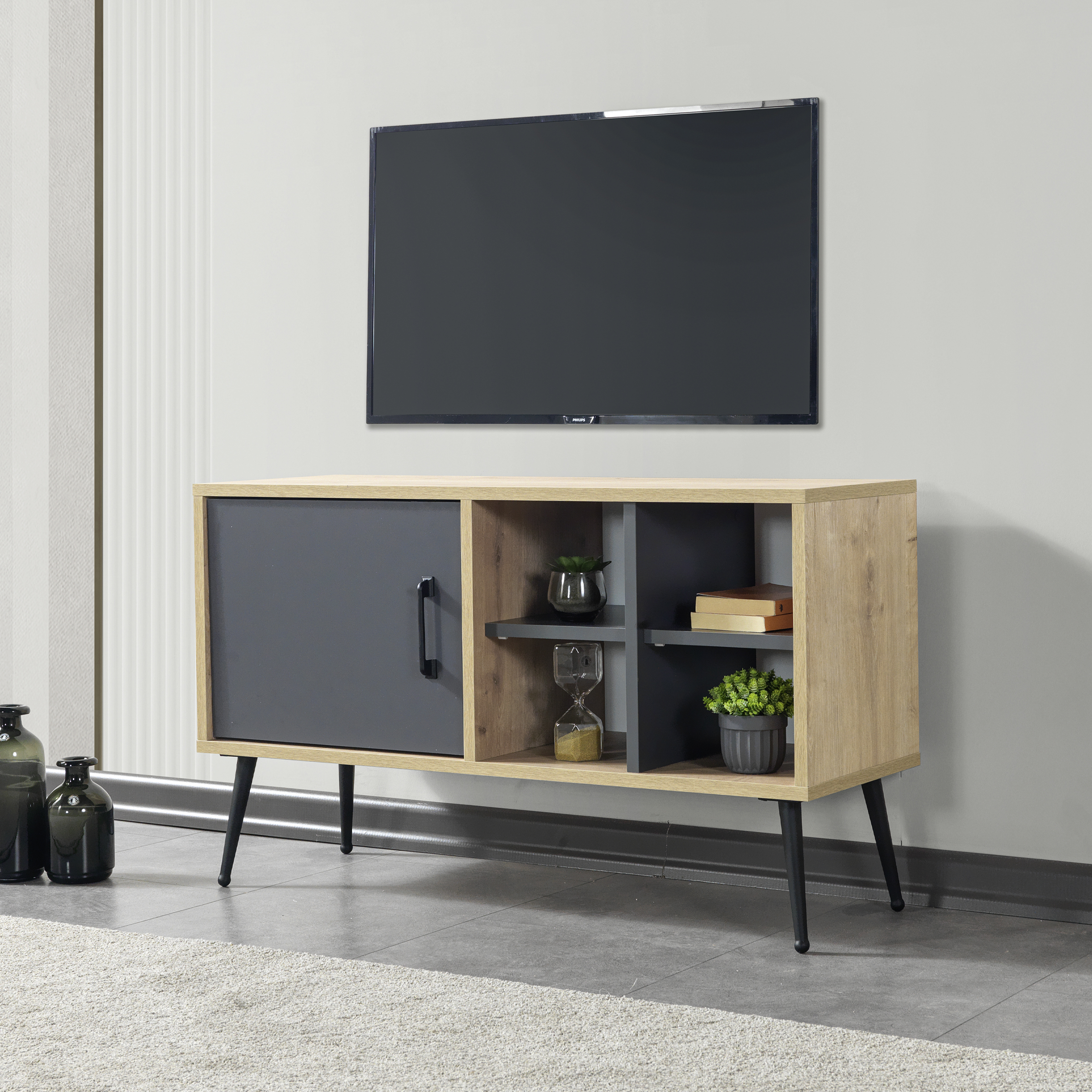 3109 Şile ( METAL AYAKLI METAL KULPLU ) 100 Cm Tv Ünitesi - Antrasit Safir