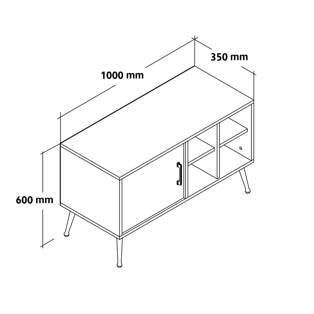 Modern çizgileriyle dikkat çeken bu lüks TV ünitesi, sağlam metal ayakları ve şık metal kulpları ile estetik ve dayanıklılığı bir araya getiriyor. 100 cm genişliği, 60 cm yüksekliği ve 35 cm derinliği ile hem şık bir görünüm hem de işlevsel bir kullanım sunuyor.