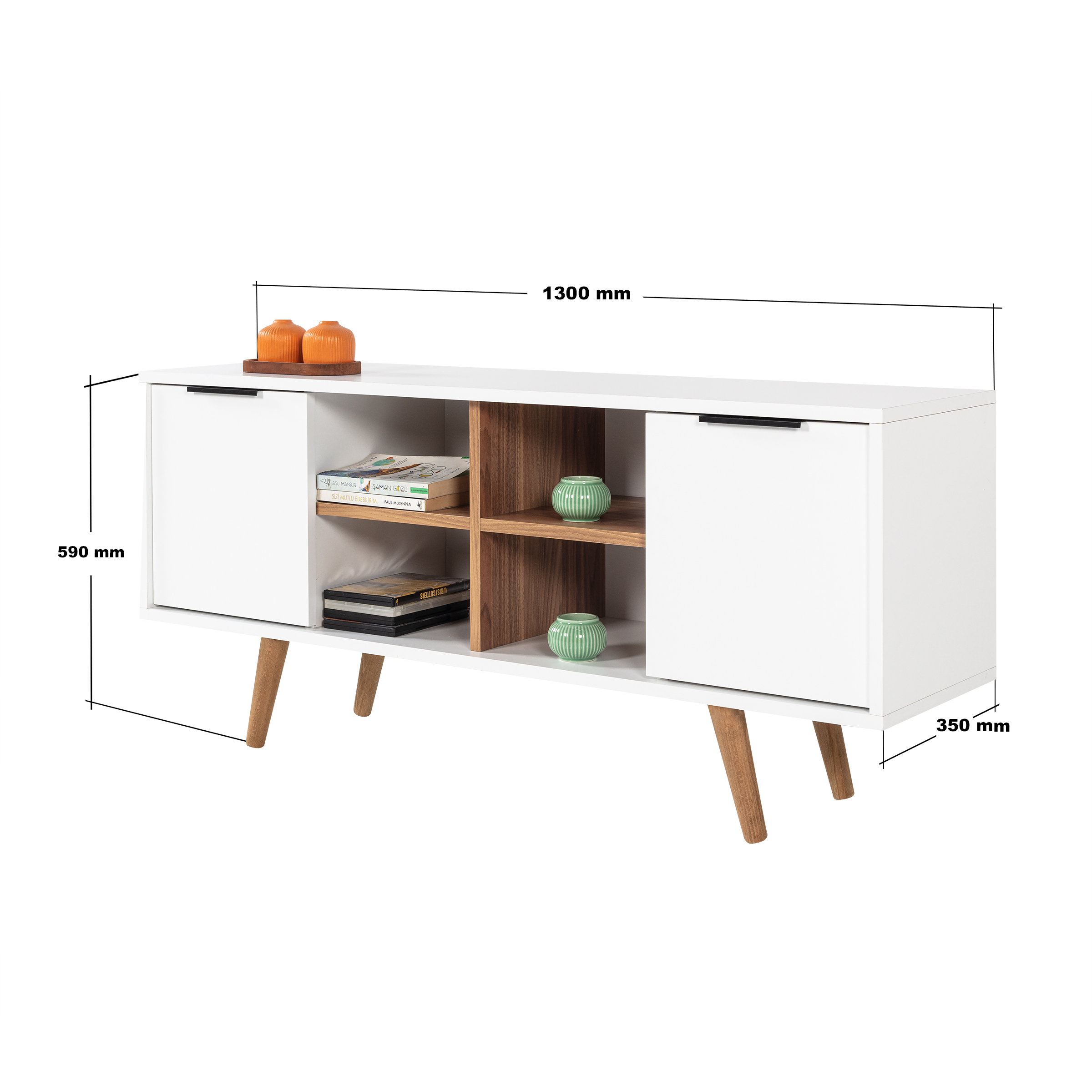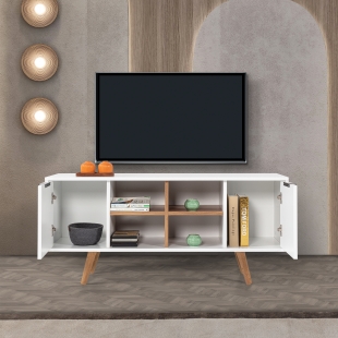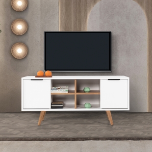 3318 Sina 130 Cm ( AHŞAP AYAKLI , METAL KULPLU ) TV Ünitesi , Beyaz - Söğüt