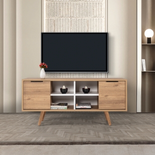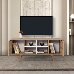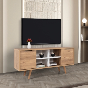 3321 Sina 130 Cm ( AHŞAP AYAKLI , METAL KULPLU ) TV Ünitesi , Sepet - Beyaz