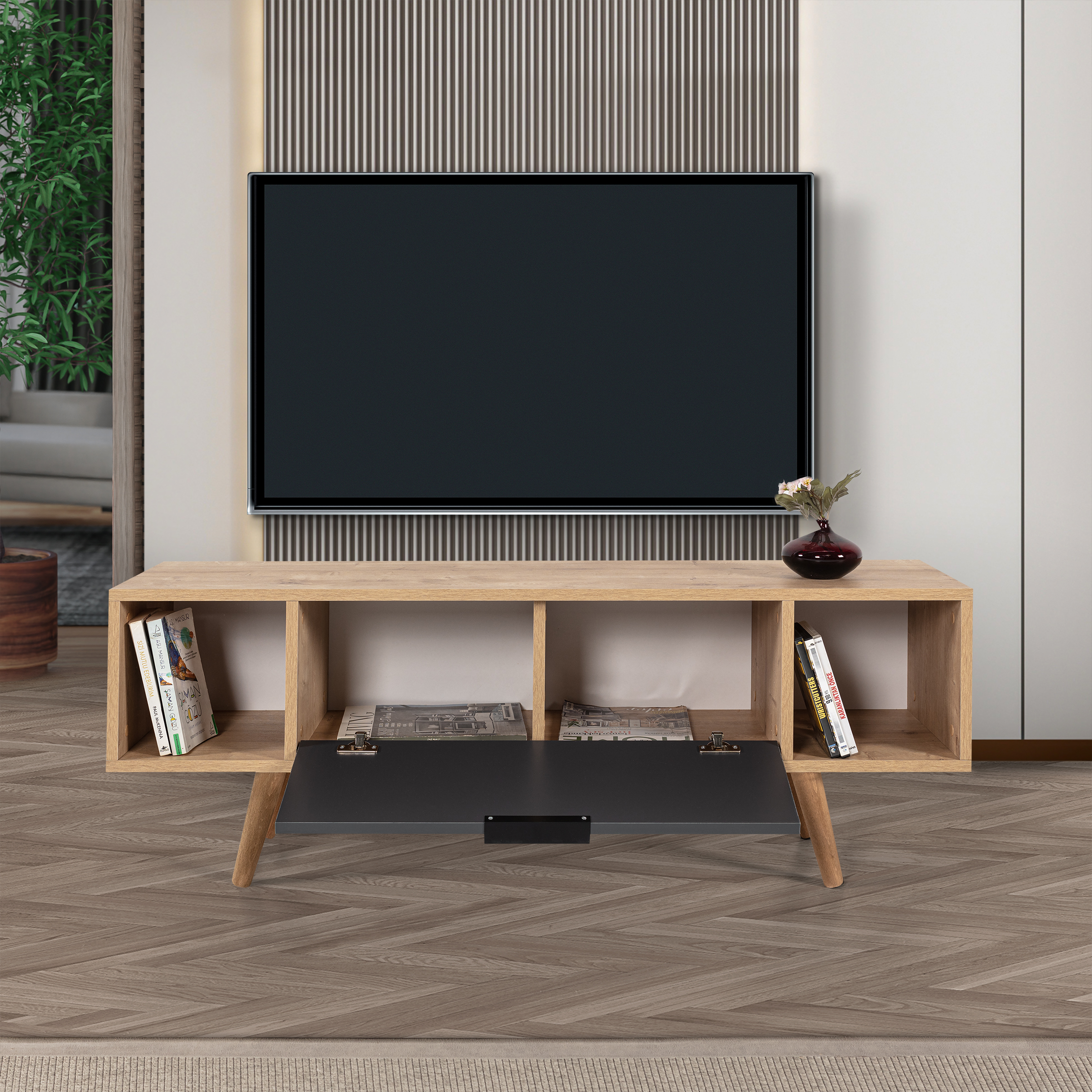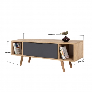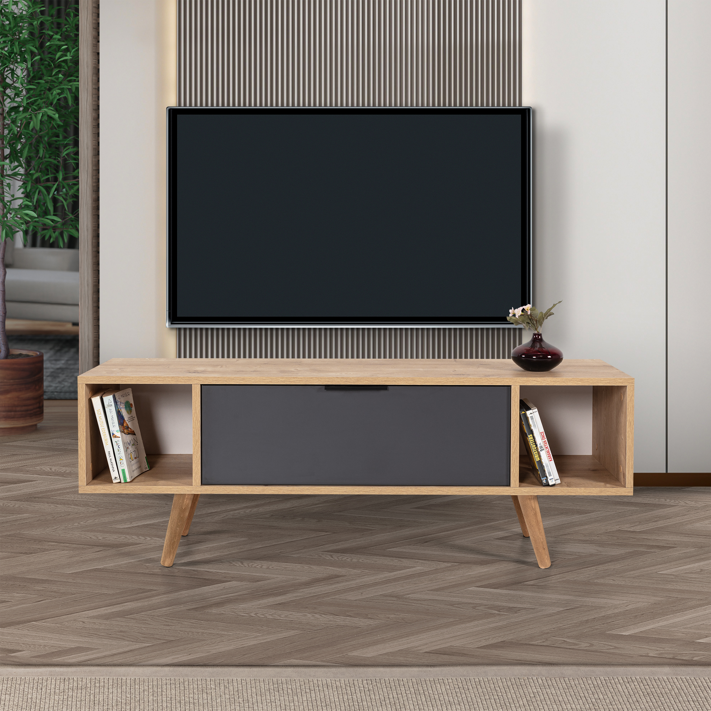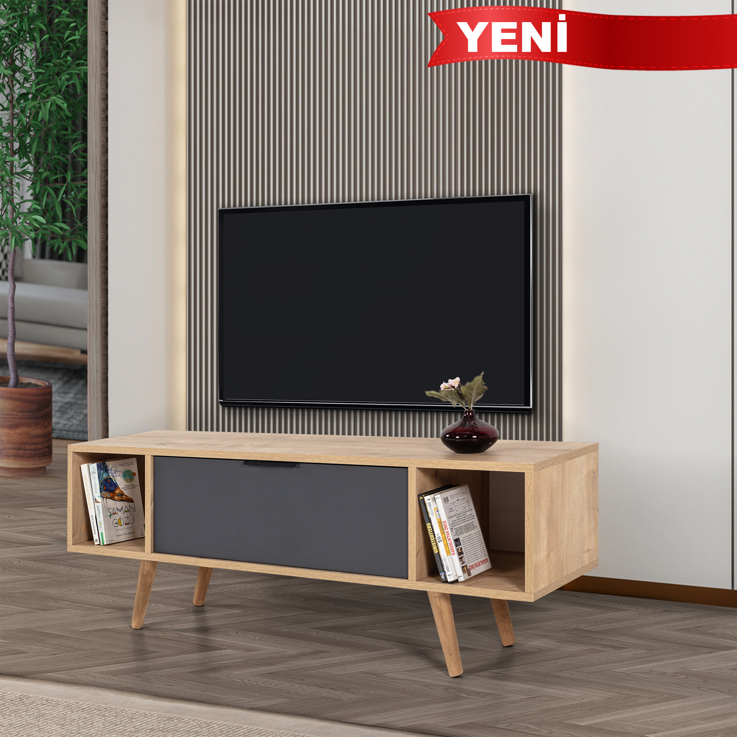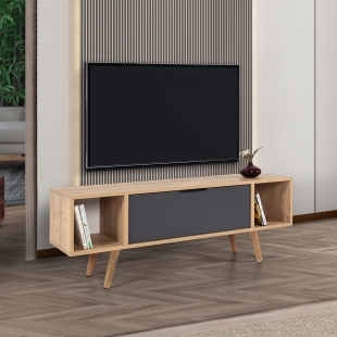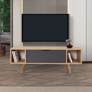3324 Mesir 130 Cm ( AHŞAP AYAKLI , METAL KULPLU ) TV Ünitesi , Safir - Antrasit