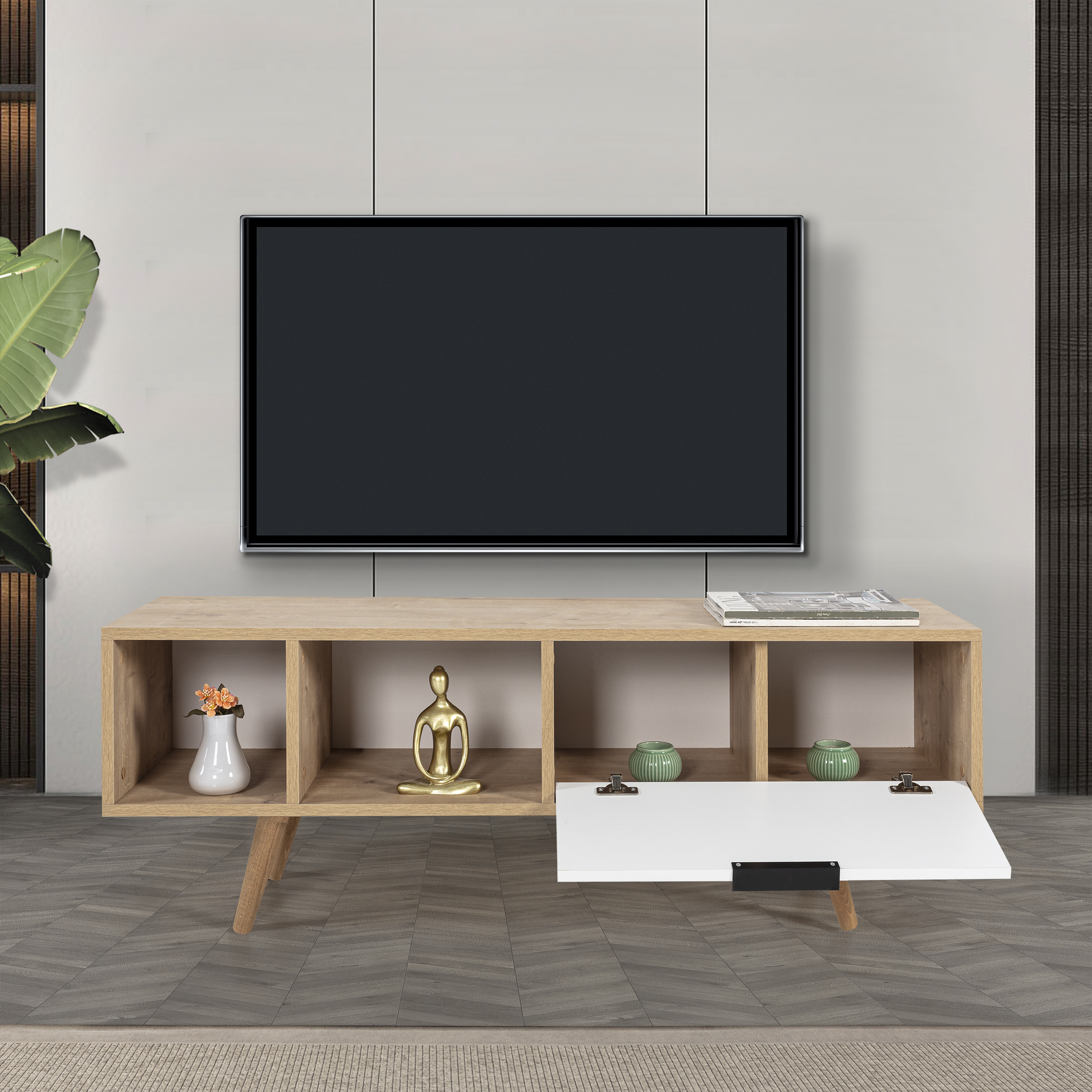 3340 Venüs 130 Cm ( AHŞAP AYAKLI , METAL KULPLU ) TV Ünitesi , Safir - Beyaz