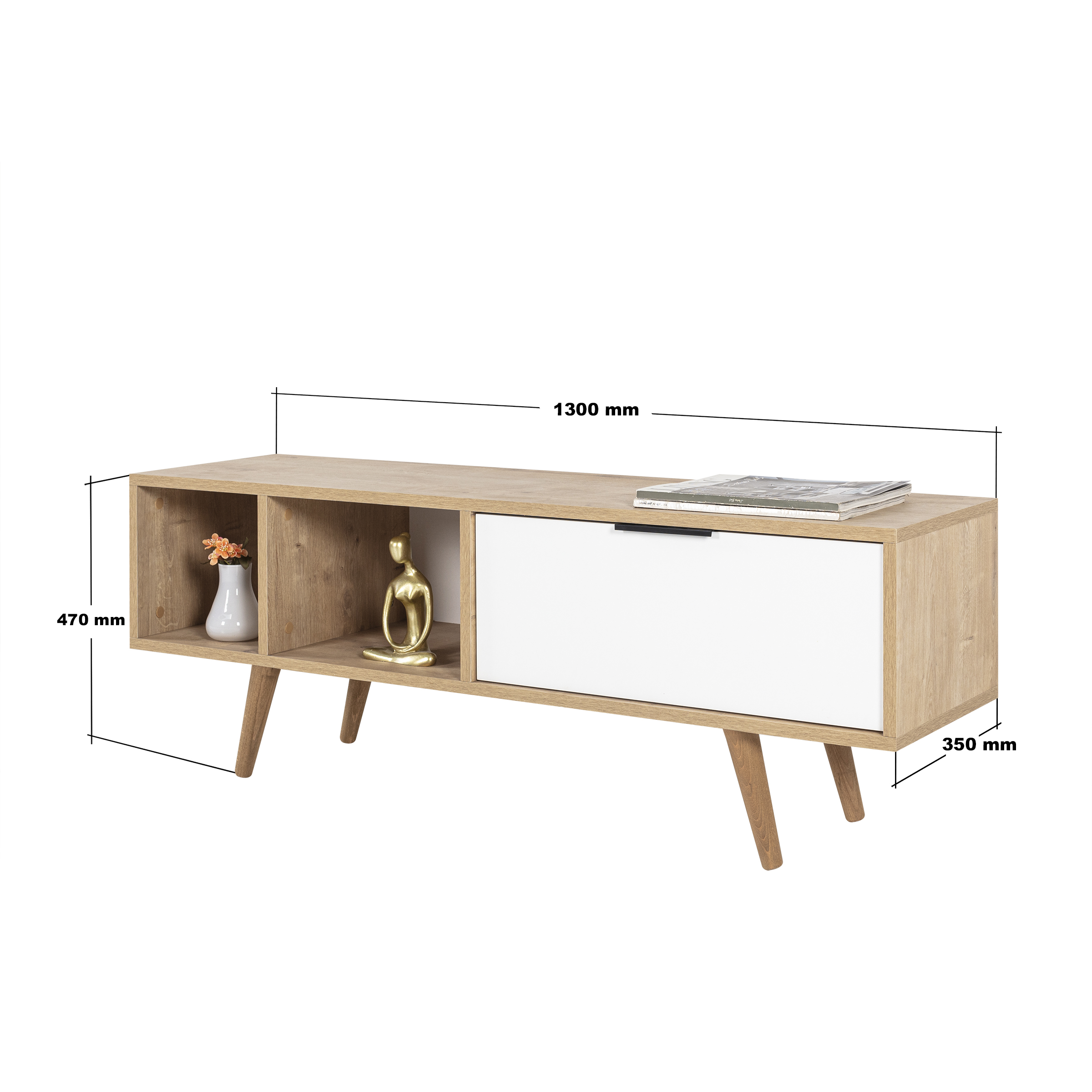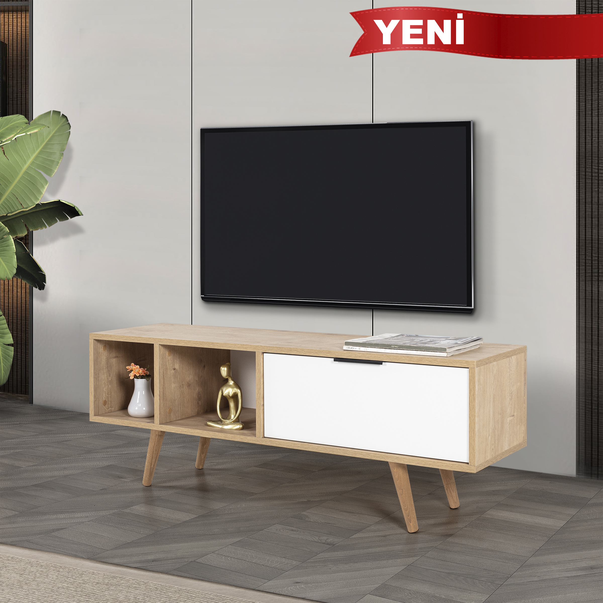 Ahşap Ayaklar , Metal Kulp İle Eşsiz ve Dayanıklı Tasarım Doğal ahşap tonlarındaki sağlam ayaklar, metal kulp ile ünitenize sıcak bir görünüm kazandırırken, modern tasarımı tamamlayarak ürüne zarif bir kontrast katar.; Hem dayanıklı hem de göz alıcı bu detaylar, üniteye karakter kazandırır.; Modern ve Şık Tasarım: Evinizin Yeni Gözdesi! Evinizin tarzını yansıtan 130 cm genişliğindeki TV Ünitesi, sade çizgileri, modern görünümü ve zarif detaylarıyla yaşam alanlarınıza estetik bir dokunuş katıyor.; 46 cm yüksekliği ve 35 cm derinliği sayesinde kompakt ölçülerde maksimum kullanım alanı sunar Kaliteli Malzeme, Uzun Ömürlü Kullanım 1.kalite suntalam malzemeden üretilen yüzey, çizilmelere karşı dayanıklıdır ve kolay temizlenir.; Sağlam yapısı sayesinde uzun yıllar boyunca ilk günkü formunu korur.; Her Dekora Uyum Sağlayan Stil Modern, İskandinav veya minimalist dekorasyon tarzlarına mükemmel uyum sağlar.; Hem şık hem de fonksiyonel yapısıyla salonunuzun odak noktası olmaya adaydır.; Öne Çıkan Özellikler: Genişlik: 130 cm Yükseklik: 46 cm Derinlik: 35 cm Malzeme: 1. kalite suntalam Ayaklar: Masif ahşap ( 20 Cm ) Kulp : Metal kulp Kolay kurulum (montaj kılavuzu kutu içerisinde) Kolay temizlenebilir yüzey Modern ve zarif görünüm Uluslararası Standartlarda Paketleme: Hasarsız ve sorunsuz bir teslimatsüreci için ürünlerimiz en doğru yöntemlerle paketlenerek sizlere teslim edilmektedir.; Fabrikamızda demonte olarak hazırlanan ürünlerimizin paketlenmesinde, ürünleri korumak için yan yüzeylerde 18mm kalınlıkta kesilen, Petek Panel adı verilen karton malzeme kullanılmaktadır.; Ürün köşelerinin deformeolmasını engellemek amacıyla, 2 cm kalınlığında köpük ve 4mm kalınlığında mukavva köşe koruyucu kullanılarak paketleme yapılmaktadır.; Dış koli ambalajında ise 5 katmanlı oluklu mukavva kullanılmaktadır.; Böylece en hassas ürünler bile güvenli şekilde taşınabilmektedir.; Tüm kartonlar %100 geri dönüşüm özelliğine sahiptir.; Kurulum Bilgisi: Ürünlerimiz demonte olarak gönderilmektedir ve kurulum müşteriye aittir.; Paketin içerisinden çıkan kurulum şablonu ile ürününüzü keyifle kullanıma hazırlayabilirsiniz.; Daha kolay bir kurulum için tüm parçalar üzerinde bulunan numaralar sayesinde, bağlantı aksesuarlarının yerini kolayca bulabilirsiniz.; Ürünün kurulumu için tornavida ve çekiç yeterlidir.; Bağlantı sistemi olarak minifiks, kavela tercih edilmektedir.; Böylece ürün zarar görmeden, defalarca kolaylıkla sökülüp kurulabilir.; 1. Sınıf Hammadde İle Üretim: Ürünlerimiz Suntalam olarak bilinen,sağlığa zararsız, kanserojen madde içermeyen Avrupa E1 kalite standartlarında yonga levhalardan üretilmiştir.; Üretimde kullanılan tüm malzemeler çevre ve çocuk sağlığı standartlarına uygundur.; Ürünlerimiz kendi fabrikamızda, yüksek teknolojili makine parkurlarında tüm aşamaları özenle kontrolden geçereksizlere ulaşmaktadır.; Üretimin tüm aşamalarının dijital ortamda gerçekleşmesi sayesinde hata minimum düzeydedir.; Garanti: Tüm ürünlerimiz üretim ve işçilik hatalarına karşı, ürünün tüm parçaları dahil olmak üzere fatura tarihinden itibaren 2 yıl garantilidir.;