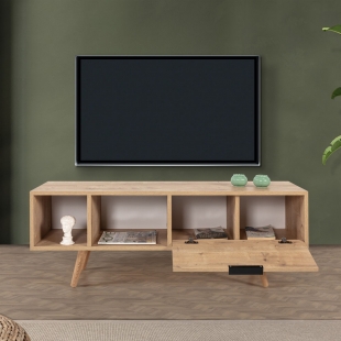 Ahşap Ayaklar , Metal Kulp İle Eşsiz ve Dayanıklı Tasarım Doğal ahşap tonlarındaki sağlam ayaklar, metal kulp ile ünitenize sıcak bir görünüm kazandırırken, modern tasarımı tamamlayarak ürüne zarif bir kontrast katar.; Hem dayanıklı hem de göz alıcı bu detaylar, üniteye karakter kazandırır.; Modern ve Şık Tasarım: Evinizin Yeni Gözdesi! Evinizin tarzını yansıtan 130 cm genişliğindeki TV Ünitesi, sade çizgileri, modern görünümü ve zarif detaylarıyla yaşam alanlarınıza estetik bir dokunuş katıyor.; 46 cm yüksekliği ve 35 cm derinliği sayesinde kompakt ölçülerde maksimum kullanım alanı sunar Kaliteli Malzeme, Uzun Ömürlü Kullanım 1.kalite suntalam malzemeden üretilen yüzey, çizilmelere karşı dayanıklıdır ve kolay temizlenir.; Sağlam yapısı sayesinde uzun yıllar boyunca ilk günkü formunu korur.; Her Dekora Uyum Sağlayan Stil Modern, İskandinav veya minimalist dekorasyon tarzlarına mükemmel uyum sağlar.; Hem şık hem de fonksiyonel yapısıyla salonunuzun odak noktası olmaya adaydır.; Öne Çıkan Özellikler: Genişlik: 130 cm Yükseklik: 46 cm Derinlik: 35 cm Malzeme: 1. kalite suntalam Ayaklar: Masif ahşap Kulp : Metal kulp Kolay kurulum (montaj kılavuzu kutu içerisinde) Kolay temizlenebilir yüzey Modern ve zarif görünüm Uluslararası Standartlarda Paketleme: Hasarsız ve sorunsuz bir teslimatsüreci için ürünlerimiz en doğru yöntemlerle paketlenerek sizlere teslim edilmektedir.; Fabrikamızda demonte olarak hazırlanan ürünlerimizin paketlenmesinde, ürünleri korumak için yan yüzeylerde 18mm kalınlıkta kesilen, Petek Panel adı verilen karton malzeme kullanılmaktadır.; Ürün köşelerinin deformeolmasını engellemek amacıyla, 2 cm kalınlığında köpük ve 4mm kalınlığında mukavva köşe koruyucu kullanılarak paketleme yapılmaktadır.; Dış koli ambalajında ise 5 katmanlı oluklu mukavva kullanılmaktadır.; Böylece en hassas ürünler bile güvenli şekilde taşınabilmektedir.; Tüm kartonlar %100 geri dönüşüm özelliğine sahiptir.; Kurulum Bilgisi: Ürünlerimiz demonte olarak gönderilmektedir ve kurulum müşteriye aittir.; Paketin içerisinden çıkan kurulum şablonu ile ürününüzü keyifle kullanıma hazırlayabilirsiniz.; Daha kolay bir kurulum için tüm parçalar üzerinde bulunan numaralar sayesinde, bağlantı aksesuarlarının yerini kolayca bulabilirsiniz.; Ürünün kurulumu için tornavida ve çekiç yeterlidir.; Bağlantı sistemi olarak minifiks, kavela tercih edilmektedir.; Böylece ürün zarar görmeden, defalarca kolaylıkla sökülüp kurulabilir.; 1. Sınıf Hammadde İle Üretim: Ürünlerimiz Suntalam olarak bilinen,sağlığa zararsız, kanserojen madde içermeyen Avrupa E1 kalite standartlarında yonga levhalardan üretilmiştir.; Üretimde kullanılan tüm malzemeler çevre ve çocuk sağlığı standartlarına uygundur.; Ürünlerimiz kendi fabrikamızda, yüksek teknolojili makine parkurlarında tüm aşamaları özenle kontrolden geçereksizlere ulaşmaktadır.; Üretimin tüm aşamalarının dijital ortamda gerçekleşmesi sayesinde hata minimum düzeydedir.; Garanti: Tüm ürünlerimiz üretim ve işçilik hatalarına karşı, ürünün tüm parçaları dahil olmak üzere fatura tarihinden itibaren 2 yıl garantilidir.;
