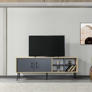 Geniş saklama alanı sayesinde hem medya cihazlarınızı hem de dekoratif objelerinizi düzenli bir şekilde yerleştirebilirsiniz. Kaliteli malzeme ve işçilikle üretilen bu TV ünitesi, salonunuza çağdaş bir tarz kazandırmak için ideal.