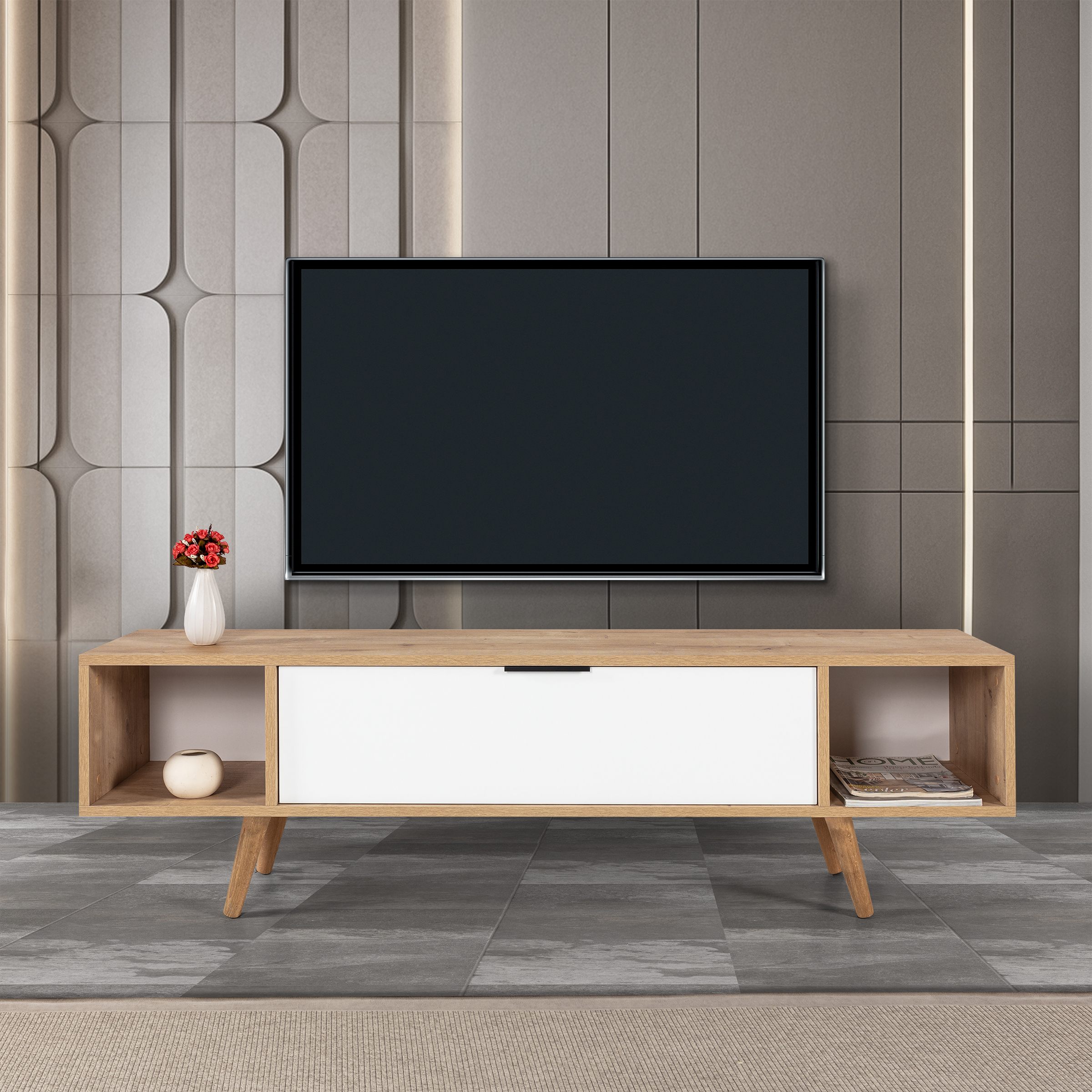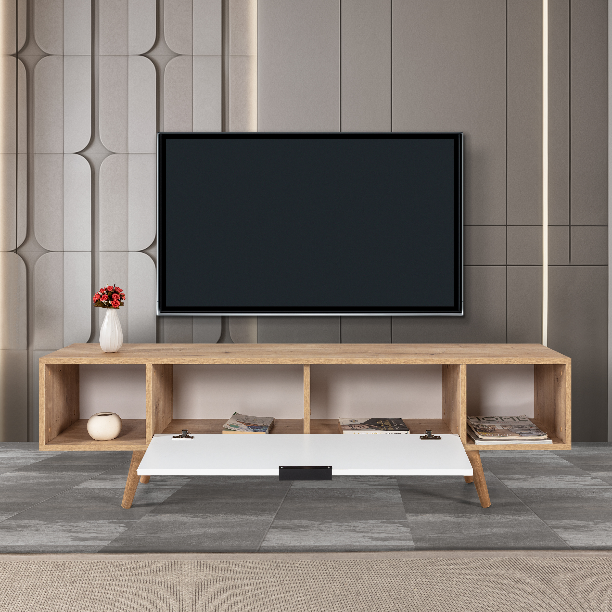 Modern Ahşap Ayaklı TV Ünitesi – 160 cm | Metal Kulplu Tasarım