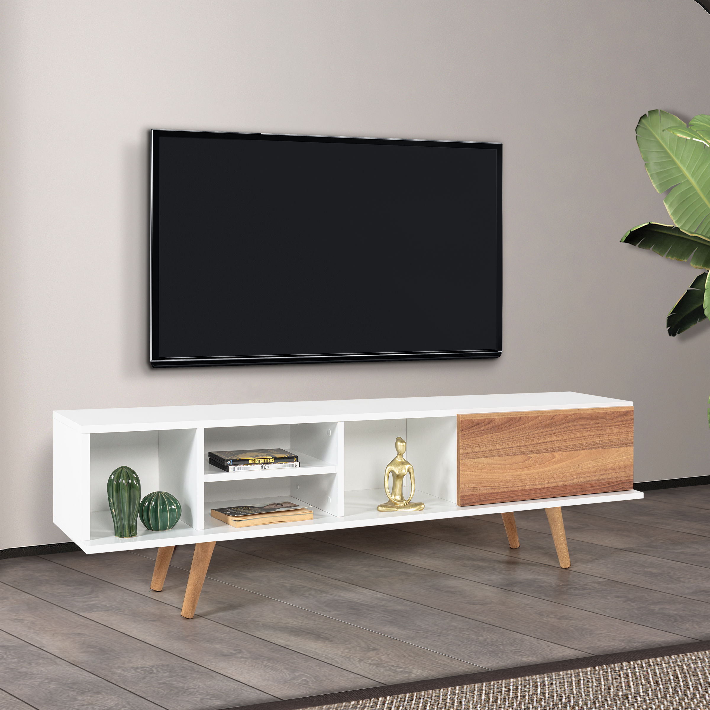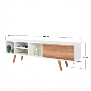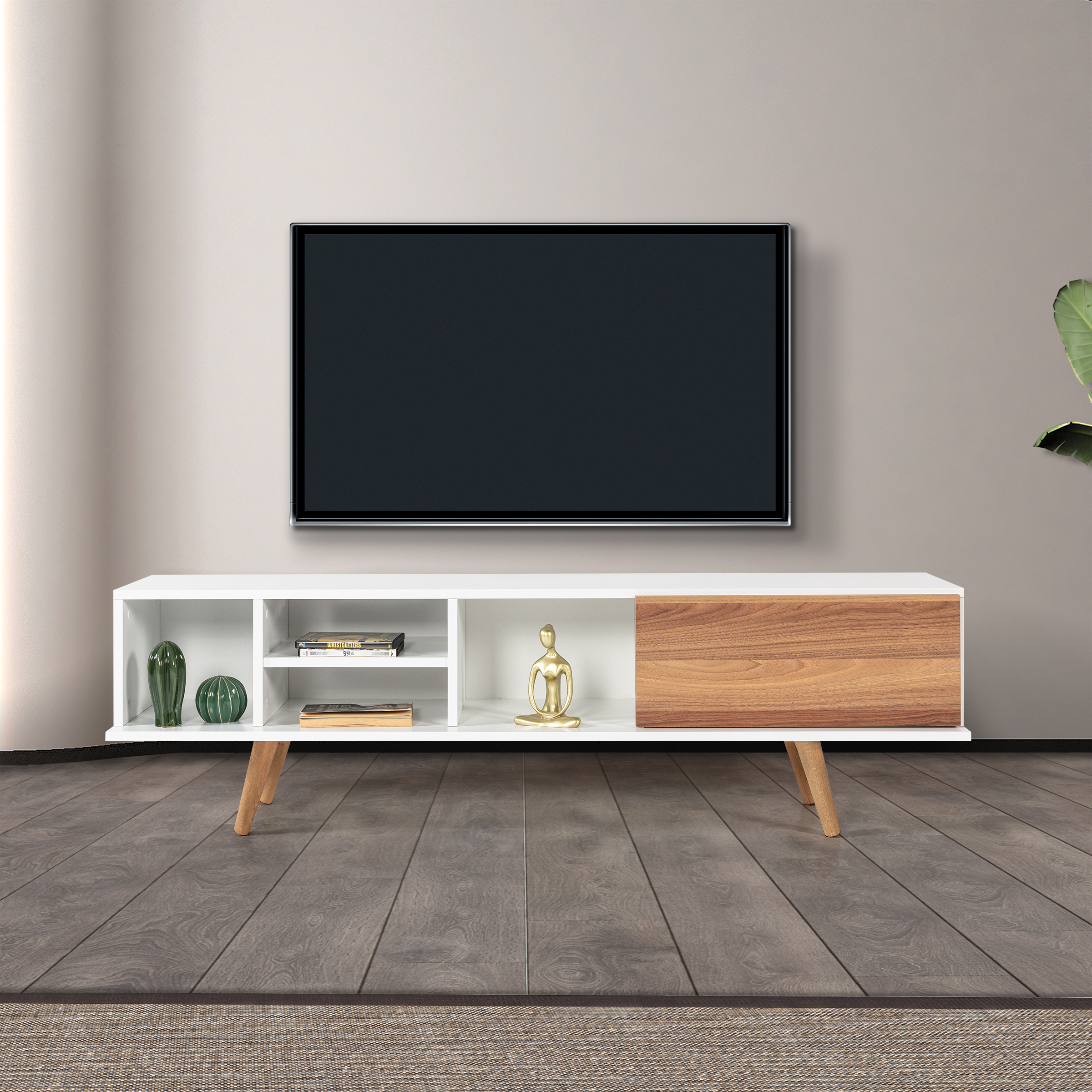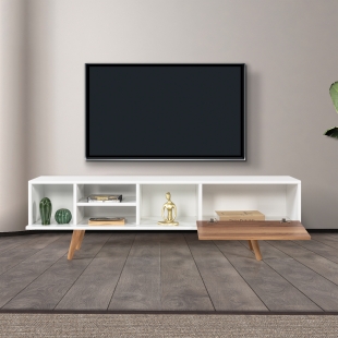 3630 Ela 160 Cm ( AHŞAP AYAKLI ) TV Ünitesi , Beyaz - Söğüt