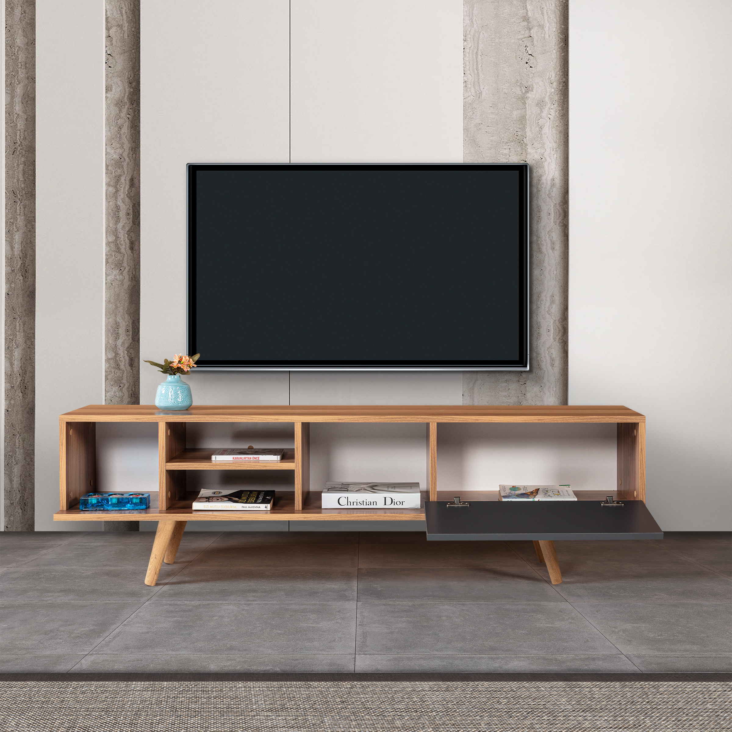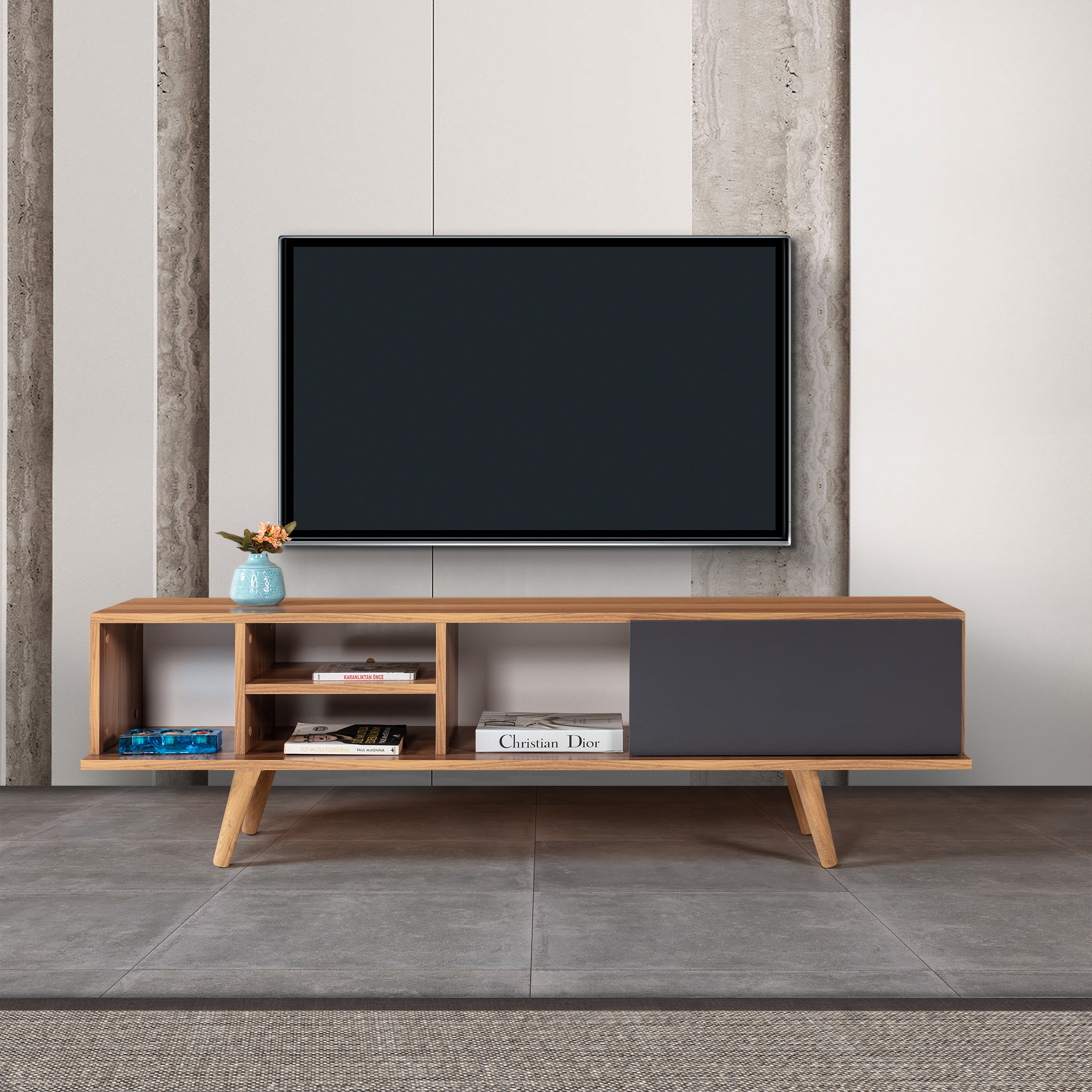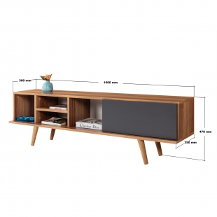 3631 Ela 160 Cm ( AHŞAP AYAKLI ) TV Ünitesi , Söğüt - Antrasit