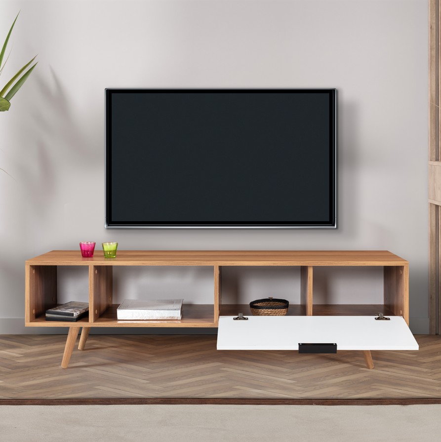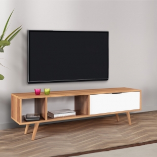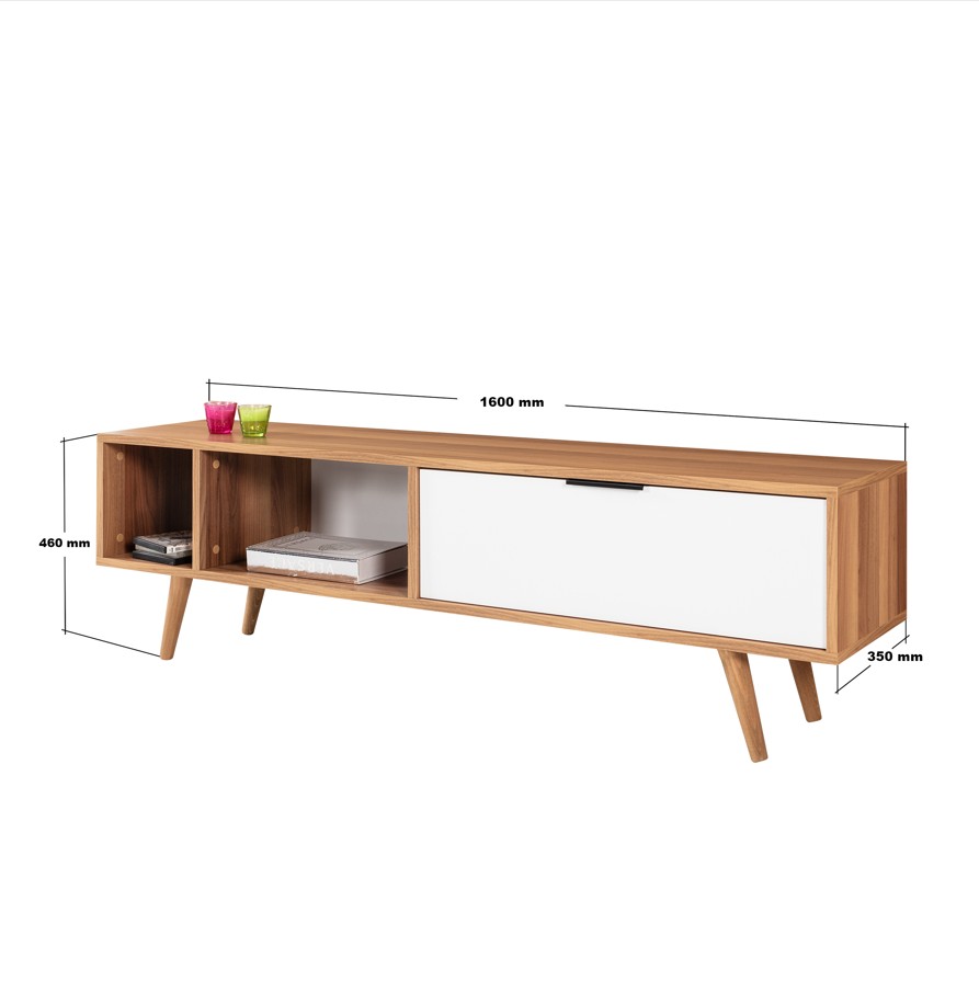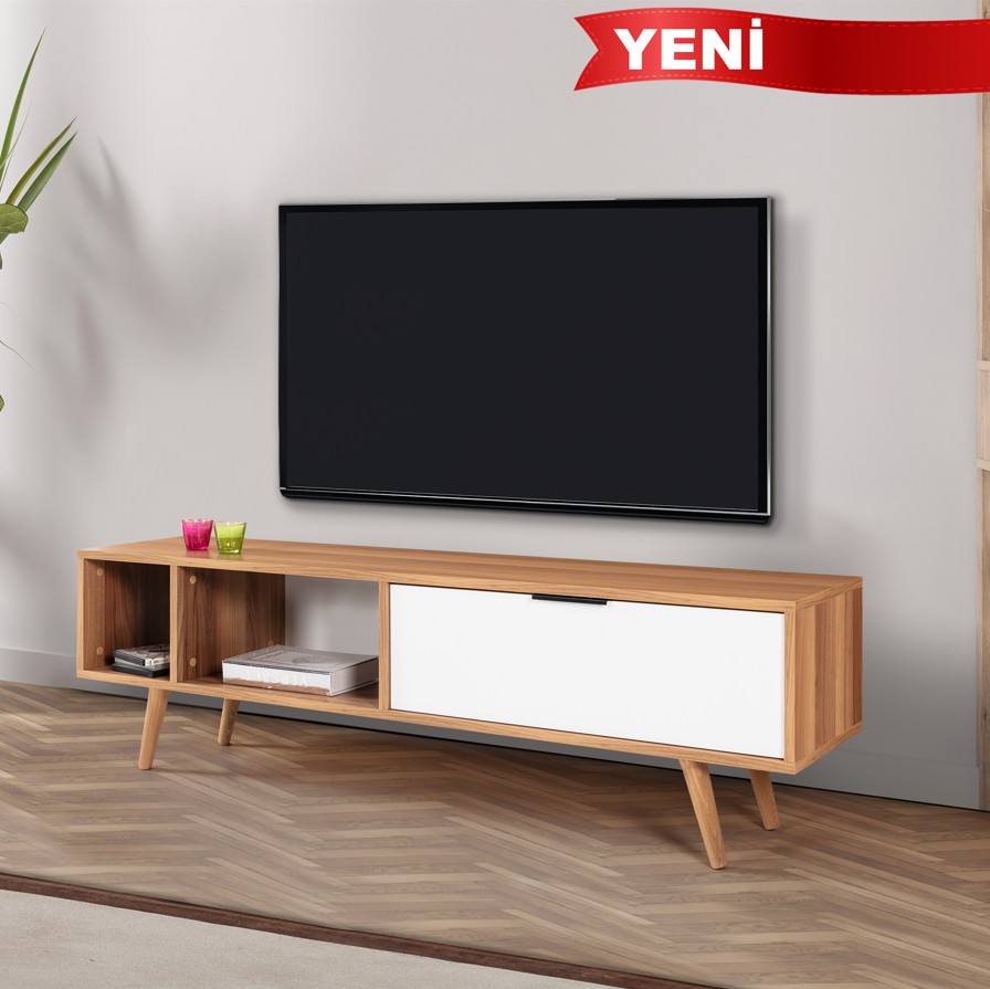 3644 Venüs 160 Cm ( AHŞAP AYAKLI , METAL KULPLU ) TV Ünitesi , Söğüt - Beyaz